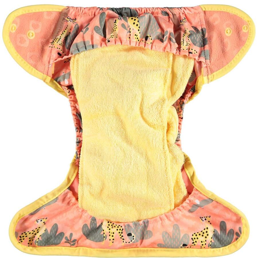 Unlike other nappies Pop-in has a clever absorbent core in the waterproof outer shell which helps hold the wetness in the middle of the nappy reducing compression and leaking and allowing you a little longer between changes times when needed!